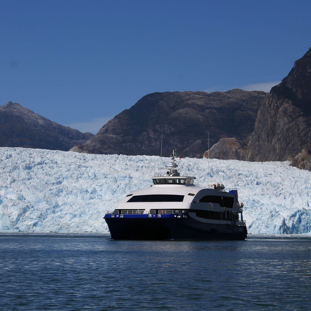 Today we board a high-speed catamaran and cruise through narrow channels lined with forested cliffs. We reach the San Rafael Glacier, a massive wall of blue ice rising from a turquoise fjord, and transfer to Zodiac rafts for a closer look. Drifting among massive blue icebergs, we witness towering columns of ice calve into the sea. We return to Puerto Aysén for the night.